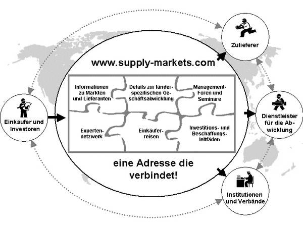 Hier liegt unsere Kompetenz: supply-markets.com hilft den richtigen Kurs bei globalen Beschaffungsaktivitäten einzuschlagen und die notwendigen Prozesse optimal auszuführen. Für interessante Beschaffungsländer wird gewerblichen Einkäufern das notwendige Beschaffungs-Know-how bereitgestellt. Dabei ergänzen wir ihre und unsere Kompetenz durch Fach- und Länderexperten im In- und Ausland. Nur auf diese Weise lässt sich den Herausforderungen in einer komplexen, dynamischen und globalen Wirtschaftswelt erfolgreich begegnen.